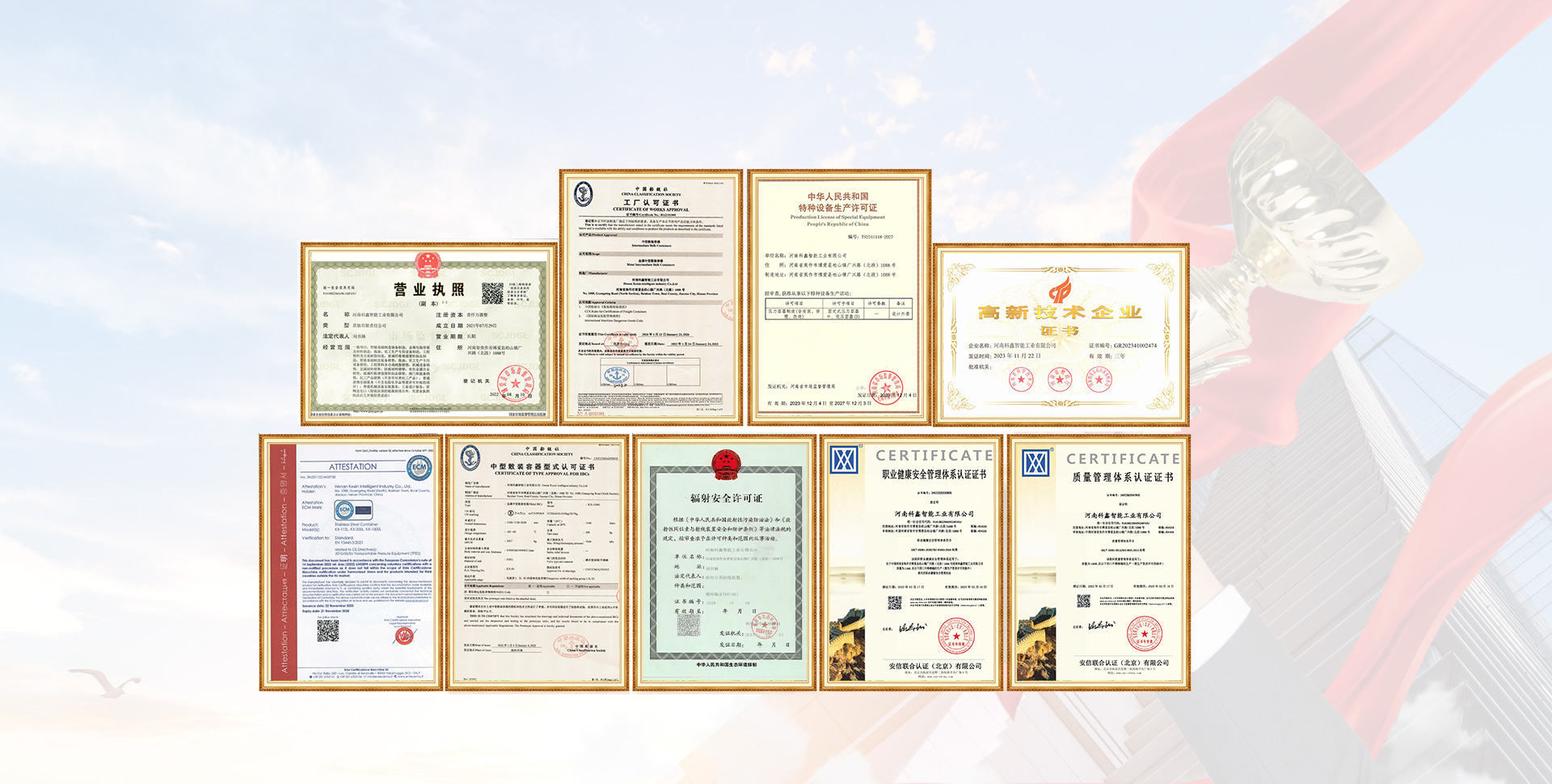 河南科鑫智能工業有限公司創建于2009年(前身為焦作市科凱氟塑機械有限公司)。企業位于焦作市博愛縣產業集聚區,廠區占地面積42000平。企業專注于不銹鋼容器、壓力容器、鋼襯氟塑防腐設備的研發與制造,并于2021年注冊成立佰達,涉足化工設備安裝等業務,完善企業智能工業產業鏈。管理助企:公司于2011年12月29日取得GB/T19001--2008/ISO9001--2008國際認證證書,現擁有出口危險貨物包裝容器質量許可證、中國船級社工廠認可及中型散裝容器證書、歐洲CE認證等資質證書,產品銷往10多個省市,并出口日韓歐等國家。公司現有高職稱的技術人員5名,中級職稱的技術人員8名,高技工20名,不銹鋼焊工百余名。科技興企:公司不斷加強與高校技術團隊合作,目前,已與鄭州輕工業大學、河南理工大學等簽訂了產學研合作協議,建立了中試基地和實驗室,配備了相關的設備和檢測儀器,為不斷提升產品工藝水平和質量奠定了扎實基礎。同時,進一步優化了核心焊接工藝,現擁有氬弧焊、埋弧焊、激光焊、深熔焊、閃光焊等成熟的焊接技術,并擁有嫻熟的內壁拋光設備與技術,為客戶提供質優產品和服務有了可靠保障。